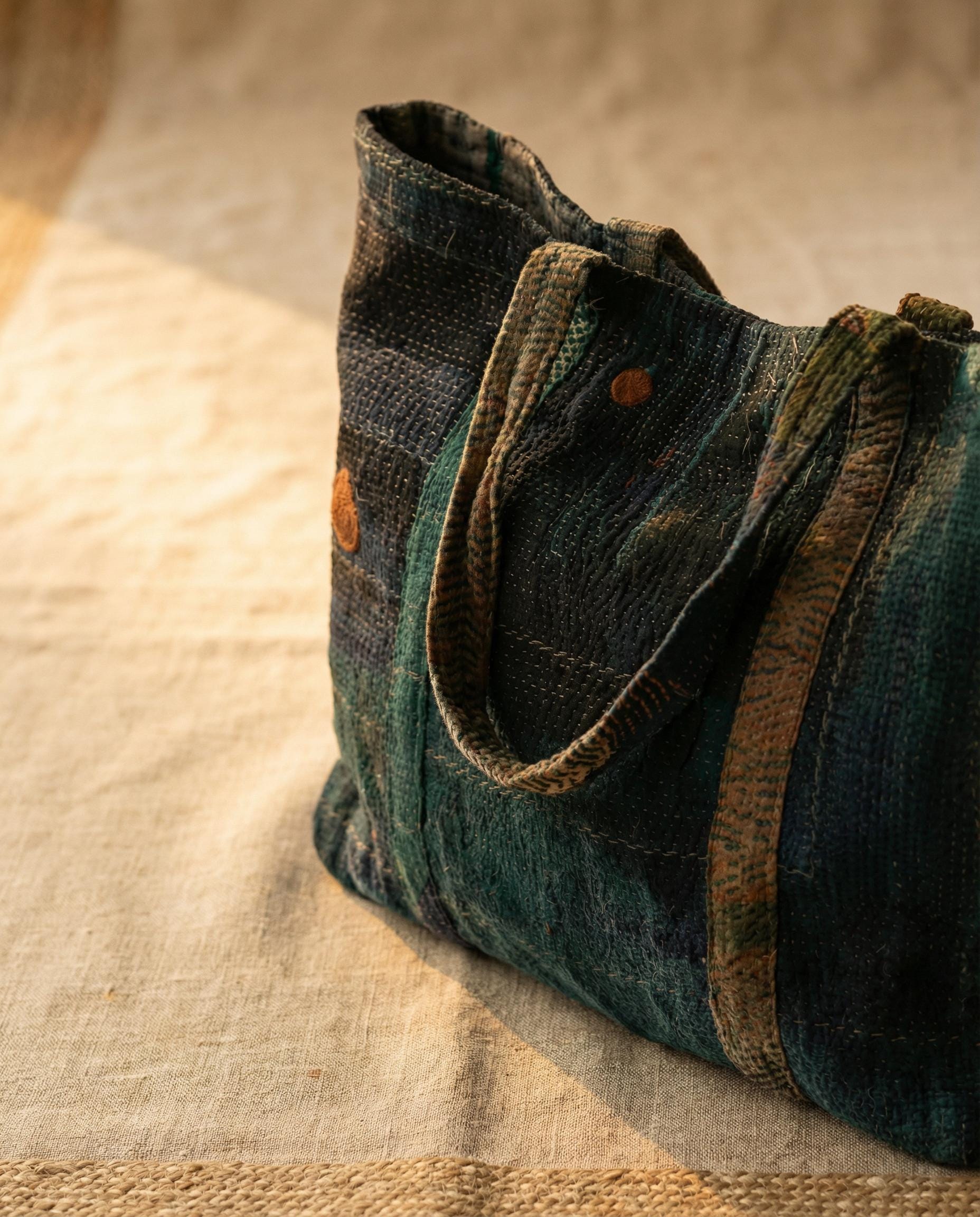 Please note: Because these bags are crafted from vintage textiles, minor imperfections, patches, or variations in the Kantha stitching are normal and add to the authentic, handmade charm of the piece.